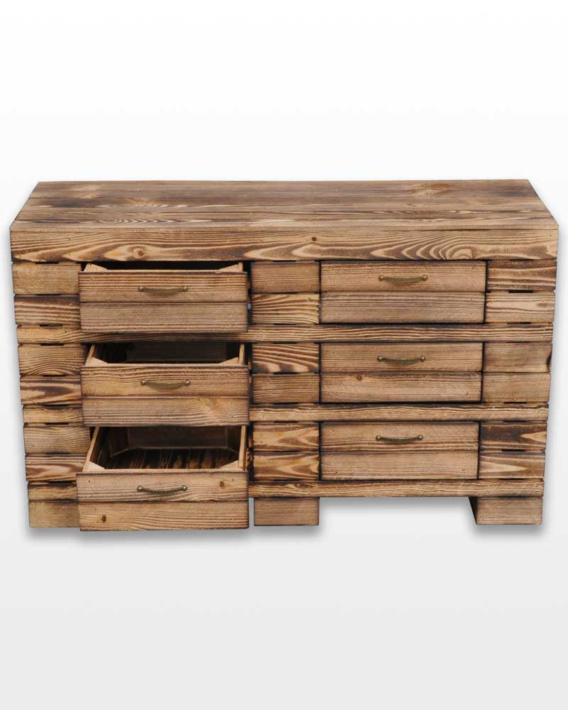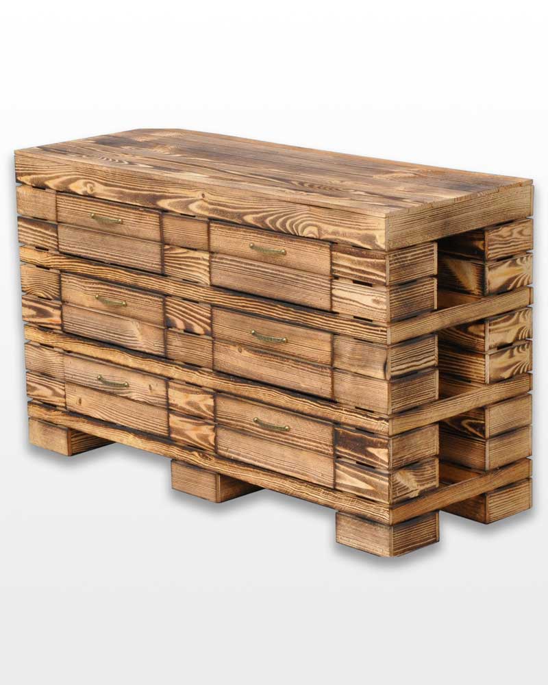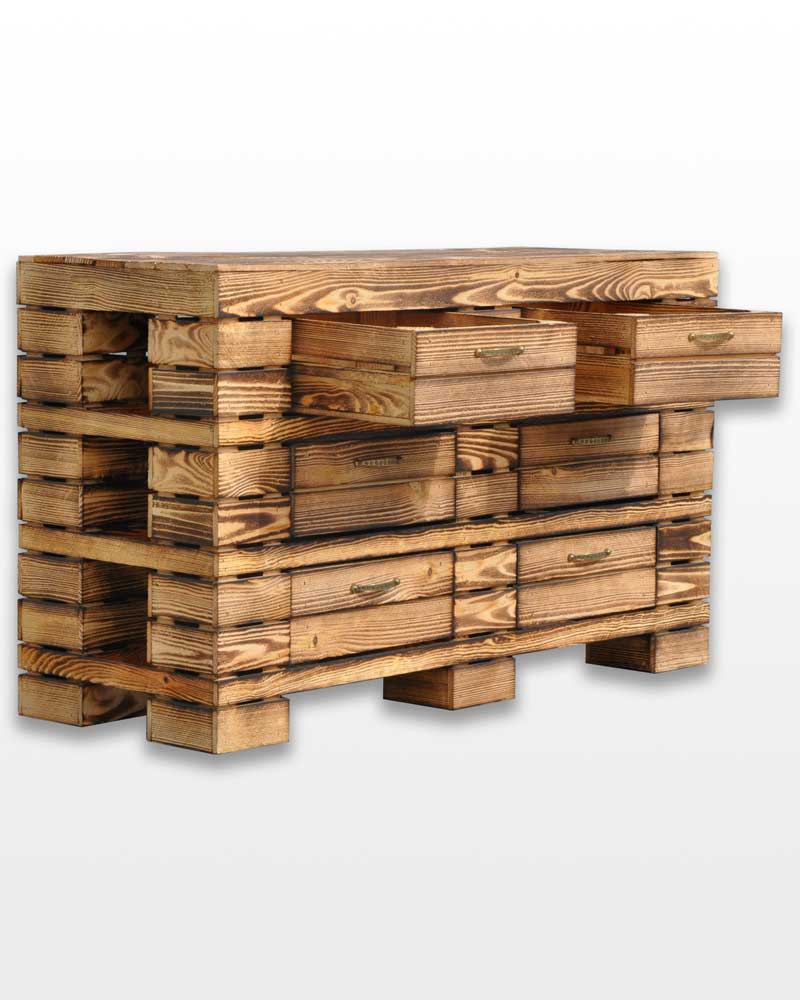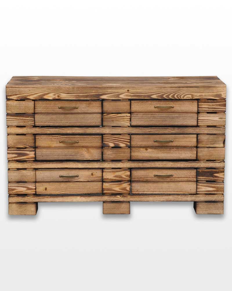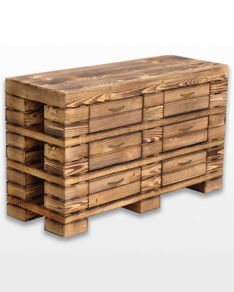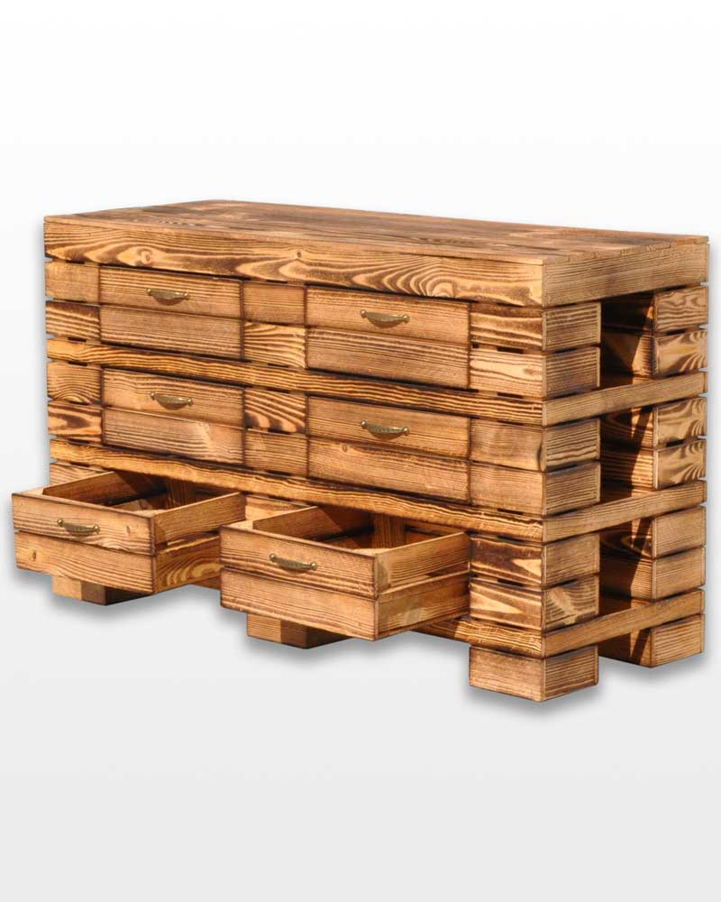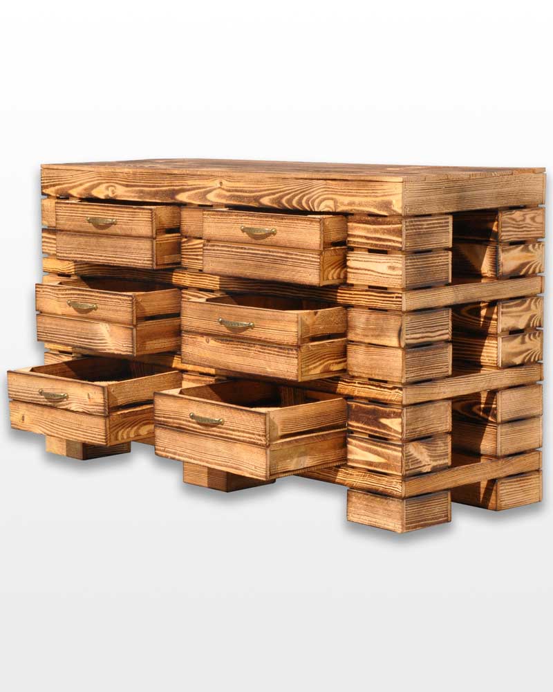 Комод деревянный тарный представляет собой мебель деревянную, выполненную в тарном стиле. Используемый материал – планка деревянная, толщиной 1 см. Комод имеет 6 выдвижных ящиков. Мебельная фурнитура не используется. Данный комод станет изящным, оригинальным предметом интерьера в жилом или общественном помещении.