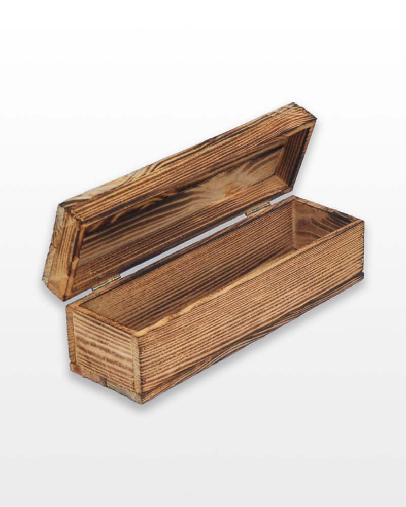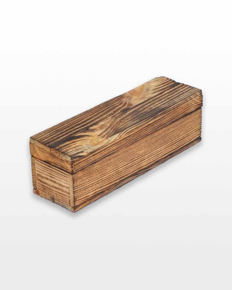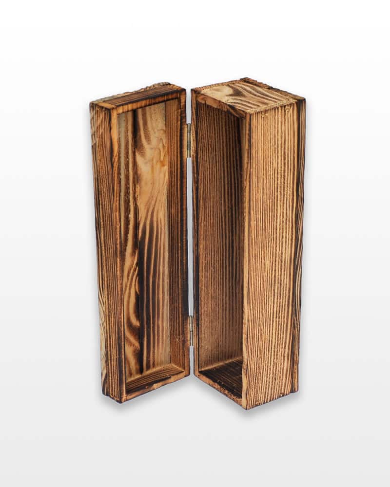 Ларец деревянный, выполнен из натуральной деревянной заготовки. Верхняя крышка крепится на петли. Предназначен для одной бутылки вина. Деревянный ларец производится только в обожженном виде.