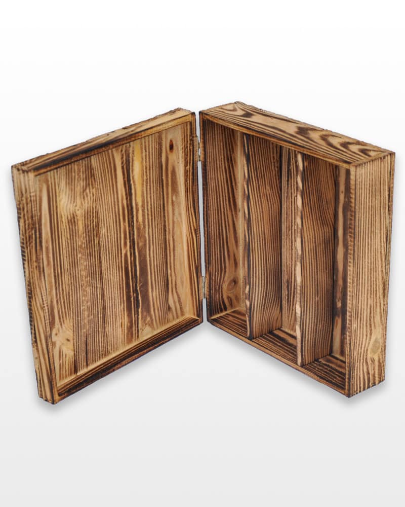 Ларец деревянный, выполнен из натуральной деревянной заготовки. Верхняя крышка крепится на петли. Производится с внутренней перегородкой и предназначен для трех бутылок вина. Деревянный ларец производится только в обожженном виде. Ларец также может служить для креативного оформления подарков, в роли органайзера для мелких вещей, бижутерии, мелких канцелярских товаров и игрушек. Сочетая изящные формы и натуральные материалы, приходится прекрасным объектом декоративных интерьерных решений. Размеры ларцов для бутылок варьируются от 36х11х11 см до 36х31х11 см.