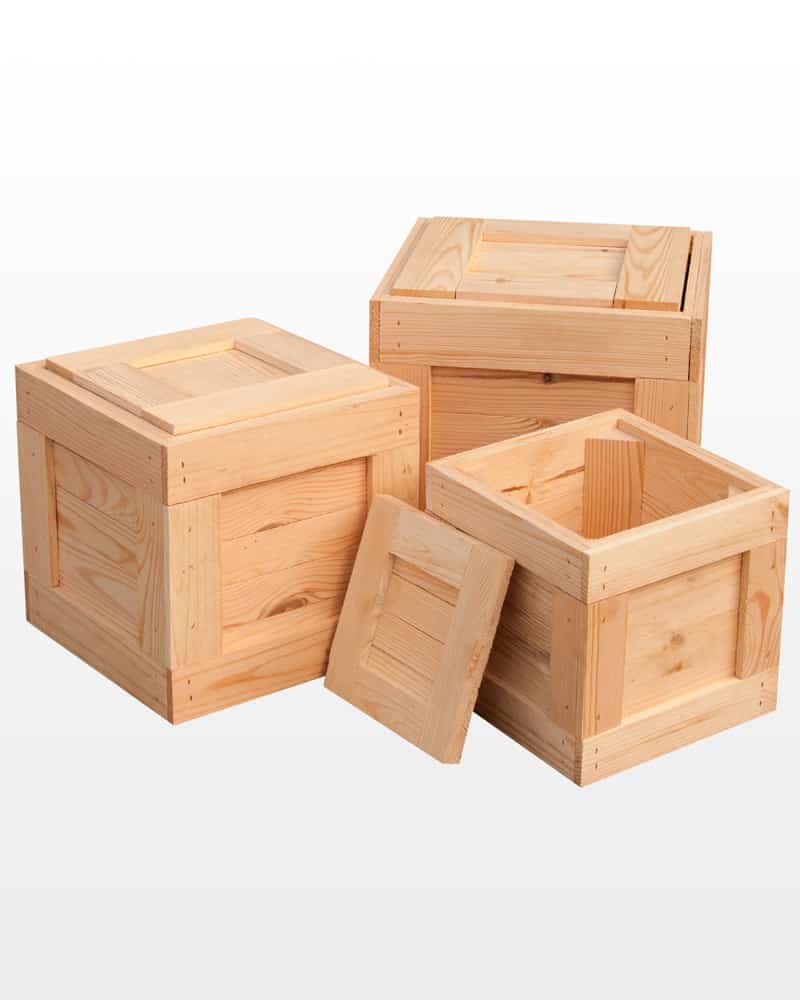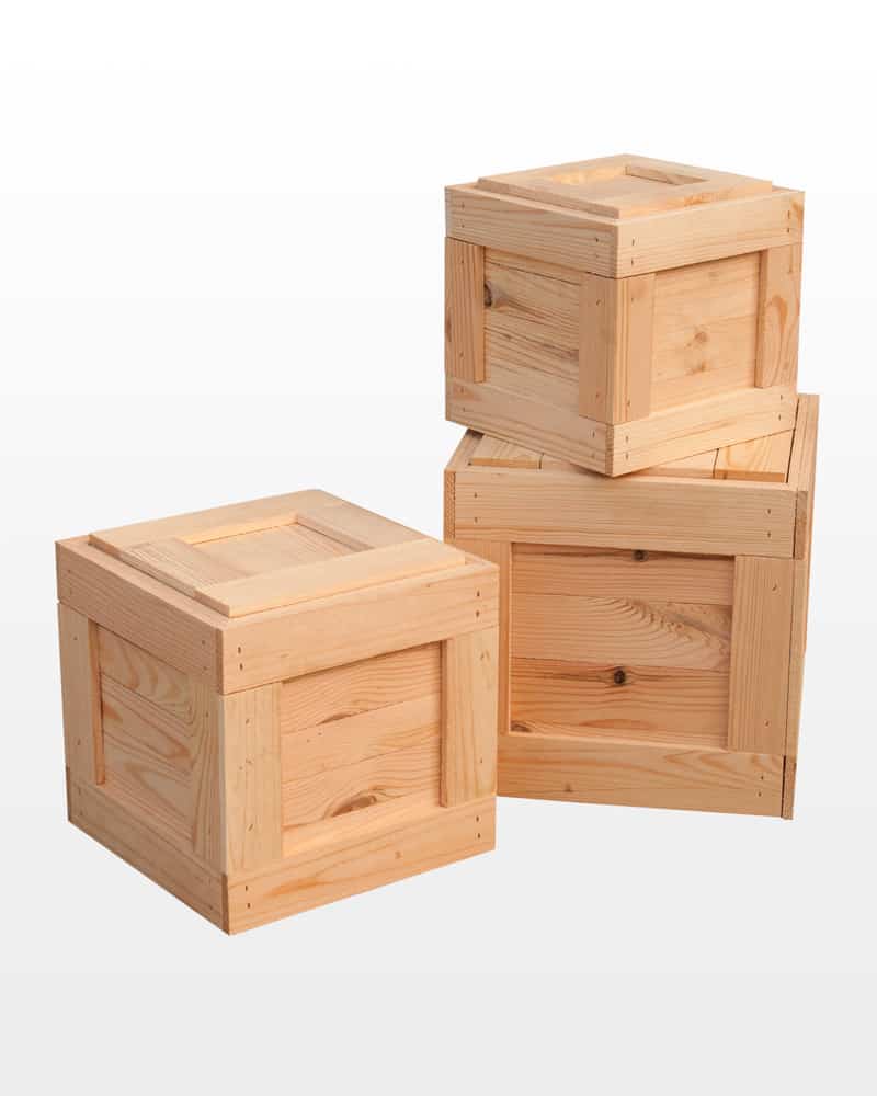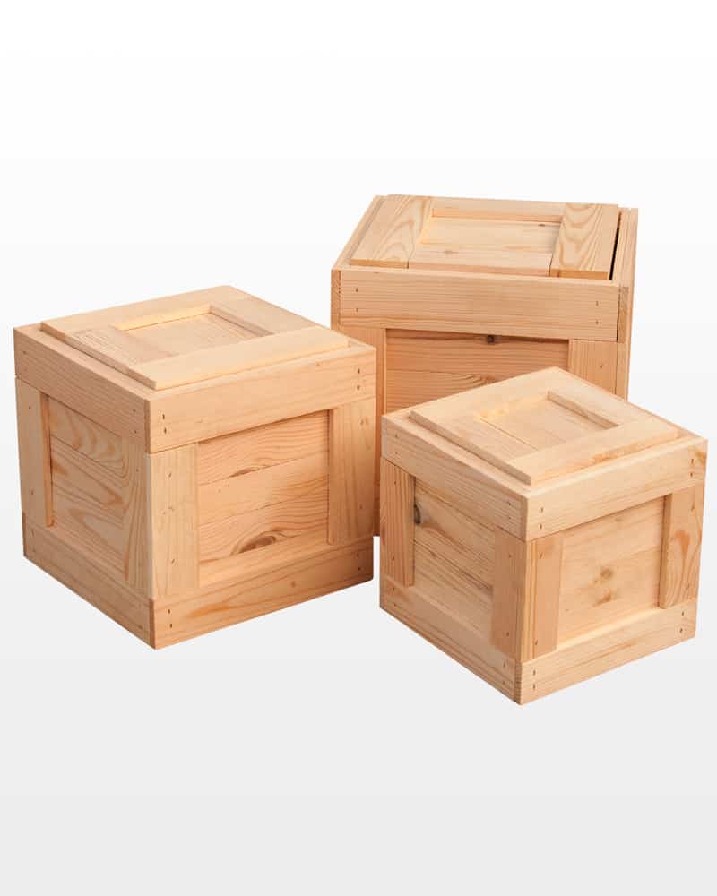 Набор ящиков-кубов натуральных – состоит из ящиков следующих размеров: 25х25х25, 30х30х30, 35х35х35 см. Ящики-кубы деревянные являются тарой широкого применения. Ящики деревянные (25х25х25, 30х30х30, 35х35х35 см) изготовлены из натуральной древесины, толщиной планки 10мм. Глухие ящики находят широкое применение при декорировании витрин, неглубоких стеллажей, хранения фруктов и ягод. Из деревянных ящиков производят стеллажи, стенки, креативные полки, столы и стулья, шкафы и другие виды мебели.