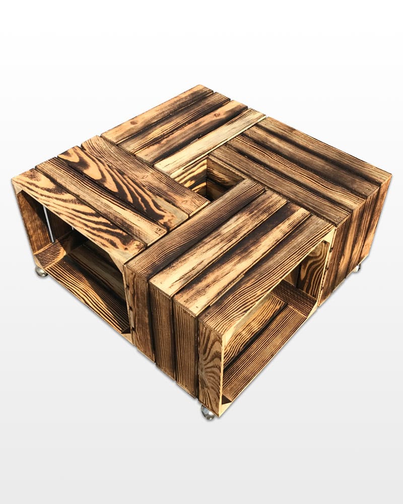 Стол из ящиков станет полезным на даче, в студии, при креативном оформлении кафе в роли интерьерного решения. Прочная конструкция прослужит долго, а эксклюзивный внешний вид не оставит равнодушными Ваших гостей. Стол из ящиков широко применяется в дачном и приусадебном оформлении зон отдыха. Стол из ящиков на колесах имеет размер 65х65х35см.