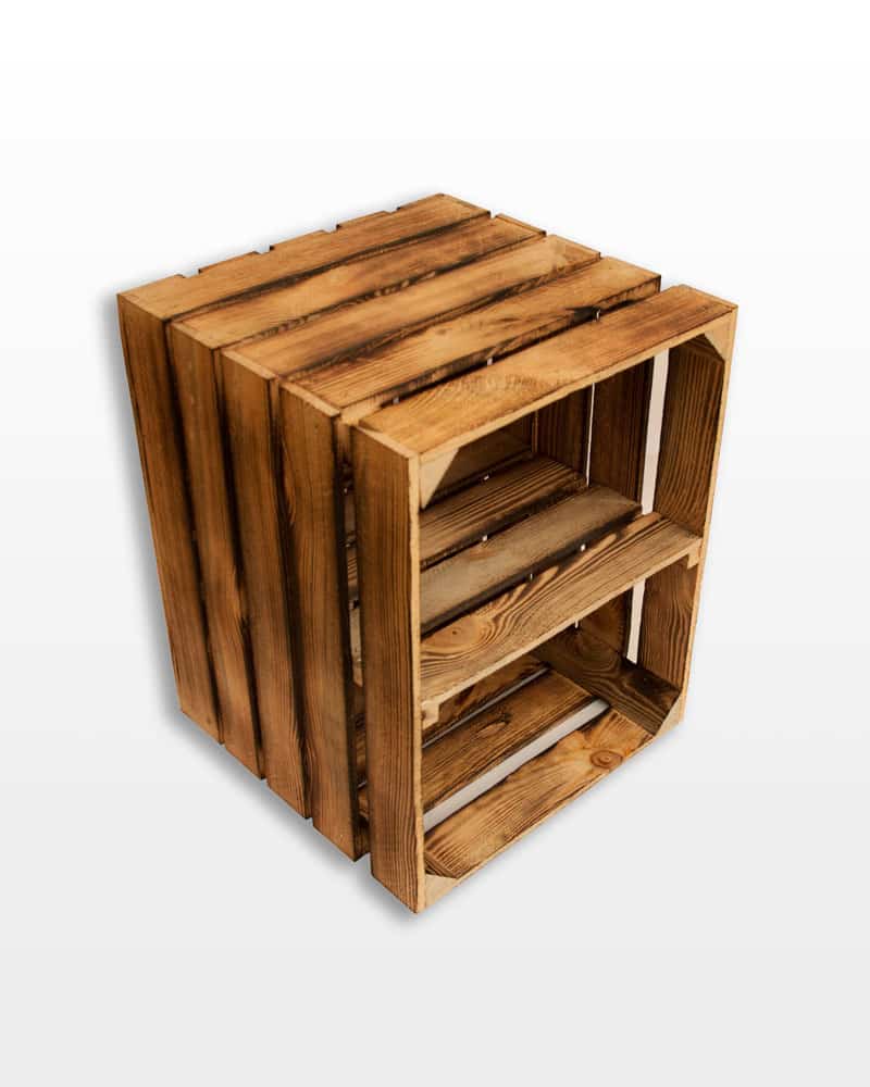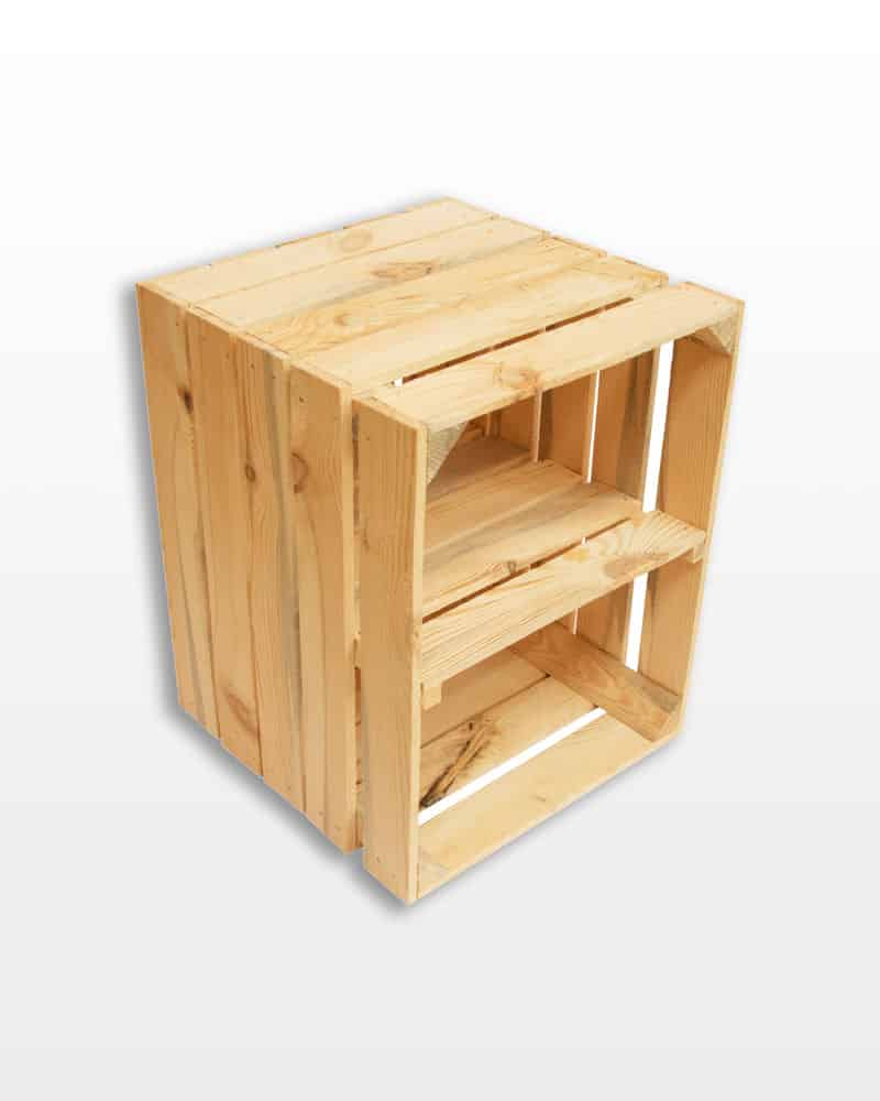 Very deep wooden boxes are a crates of wide application. The wooden box (50x40x40) is made of natural wooden plank, with a thickness of 10 mm. Very deep crates are widely used in creating showcases, shelving, storage of fruits and berries. In combination with lower crates, interesting volumetric walls are obtained for interior decoration. From very deep wooden boxes often racks, walls, cabinets, creative shelves, furniture, tables and chairs can be produced. Very deep wooden boxes 33 cm have five planks in height.
