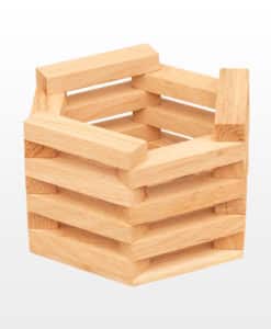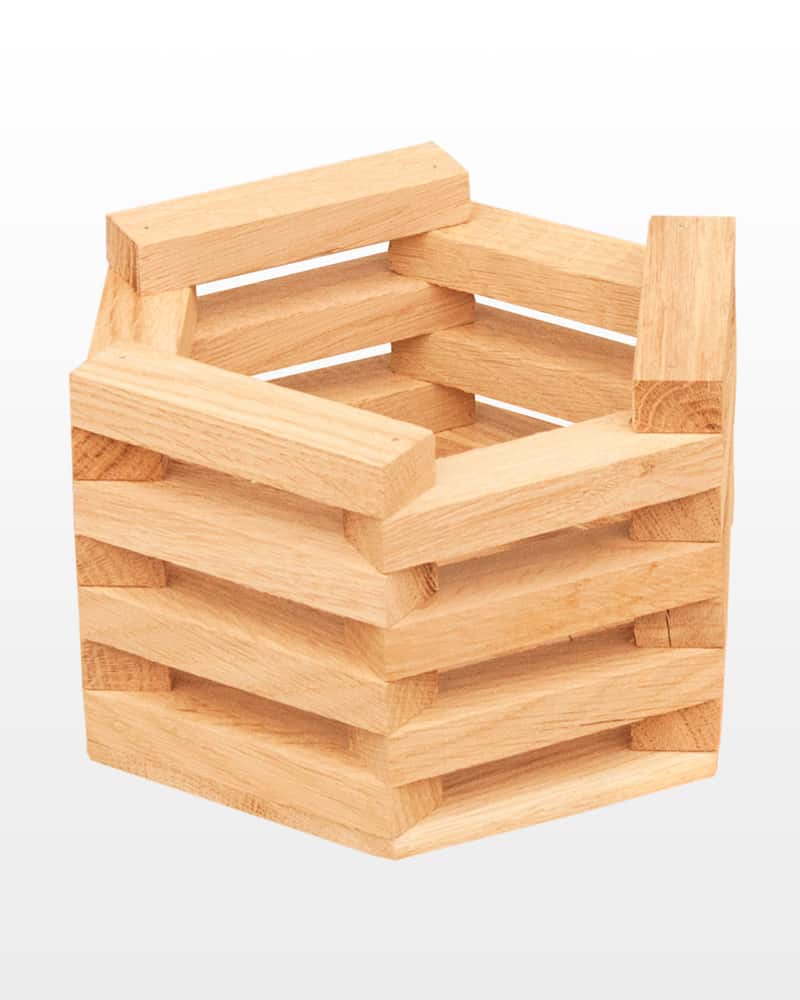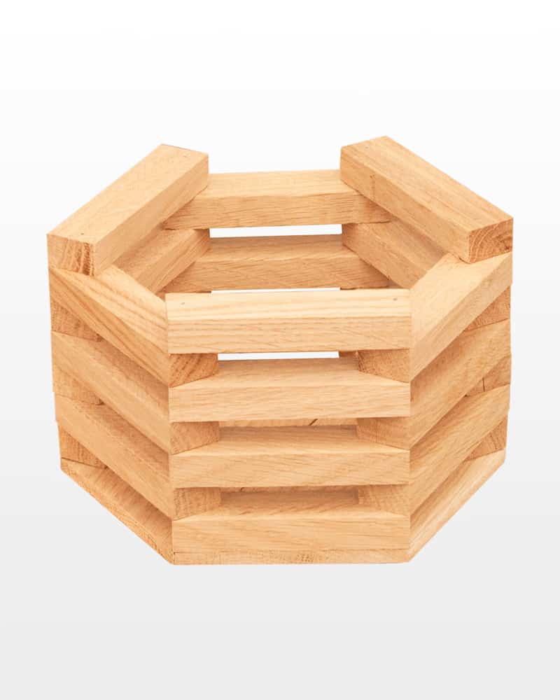 Деревянный шестиугольный ящик из породы дерева дуб имеет размер диаметра 20 см, высоту 11 см. Собран из дубовых реек. Имеет гладкую наружную и внутреннюю поверхность. Применяется в декорировании витрин, интерьеров, прикассовых зон магазинов, для хранения различных предметов.