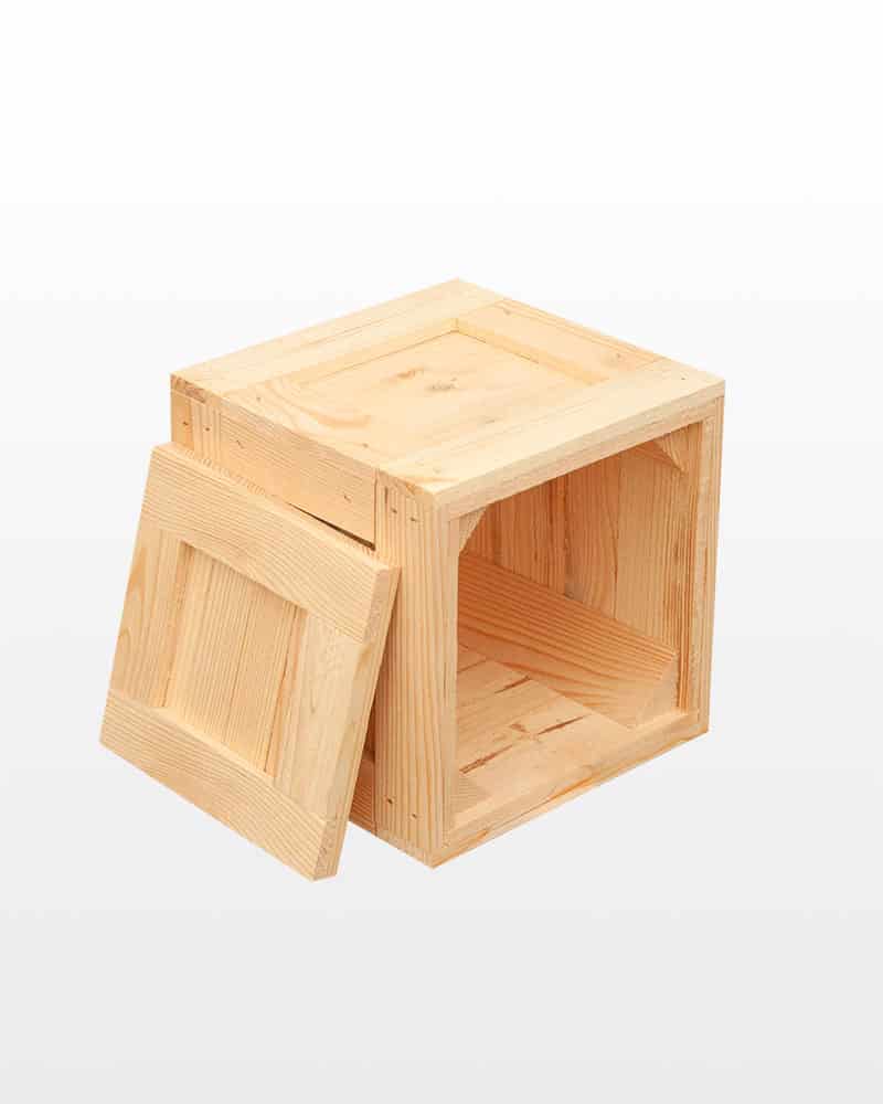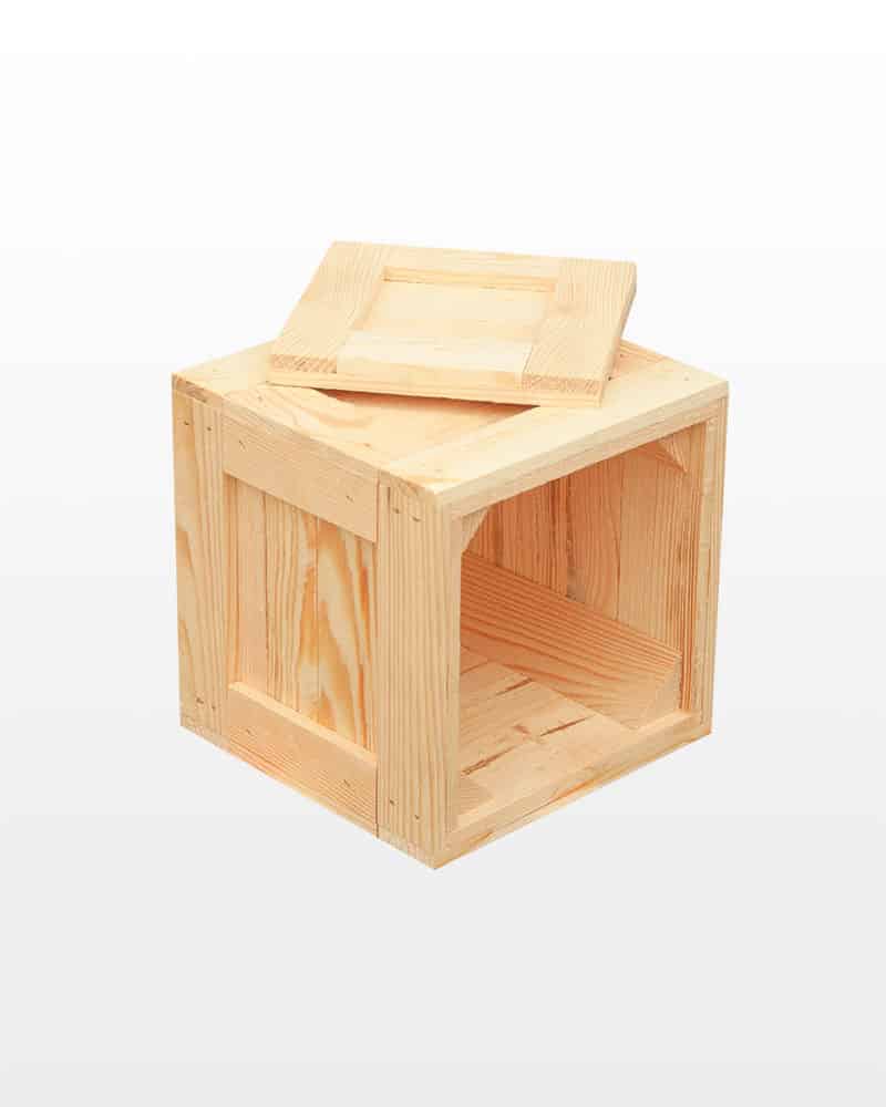 Ящики-куб глухой – тара с равными параметрами высоты, ширины и глубины. Габариты варьируются – 25, 30 и 35 см. Маленькие ящики-кубы деревянные являются тарой широкого применения. Ящик деревянный (25х25х25) изготовлен из натуральной древесины, толщиной планки 10мм. Маленькие натуральные ящики-кубы находят широкое применение при декорировании витрин, глубоких стеллажей, хранения овощей. В комбинации с более низкими ящиками получаются интересные объемные стенки при оформлении интерьеров.