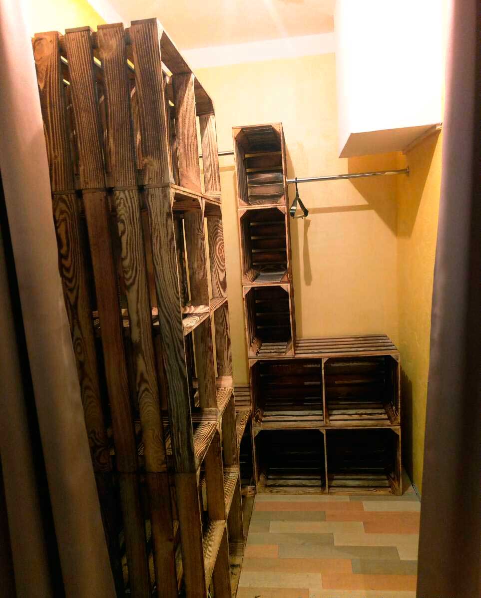 Sample to create wardrobe with wooden crates. All components are burned. After soft rubbing and soft varnishing such rack will be nice and clean and serves as functional adding to any living space. Used boxes: 50х30х40, 40х40х40, 60х40х40 Showcase with wooden boxes. Tulchin. Wooden boxes in beaty hair workshop